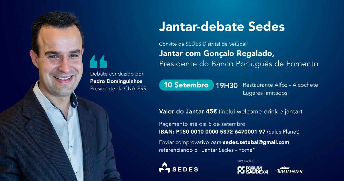 O Fórum Saúde XXI e a SEDES Distrital de Setúbal organizam, com o apoio do BoatCenter, um Jantar-Debate de grande prestígio dedicado ao futuro económico ...